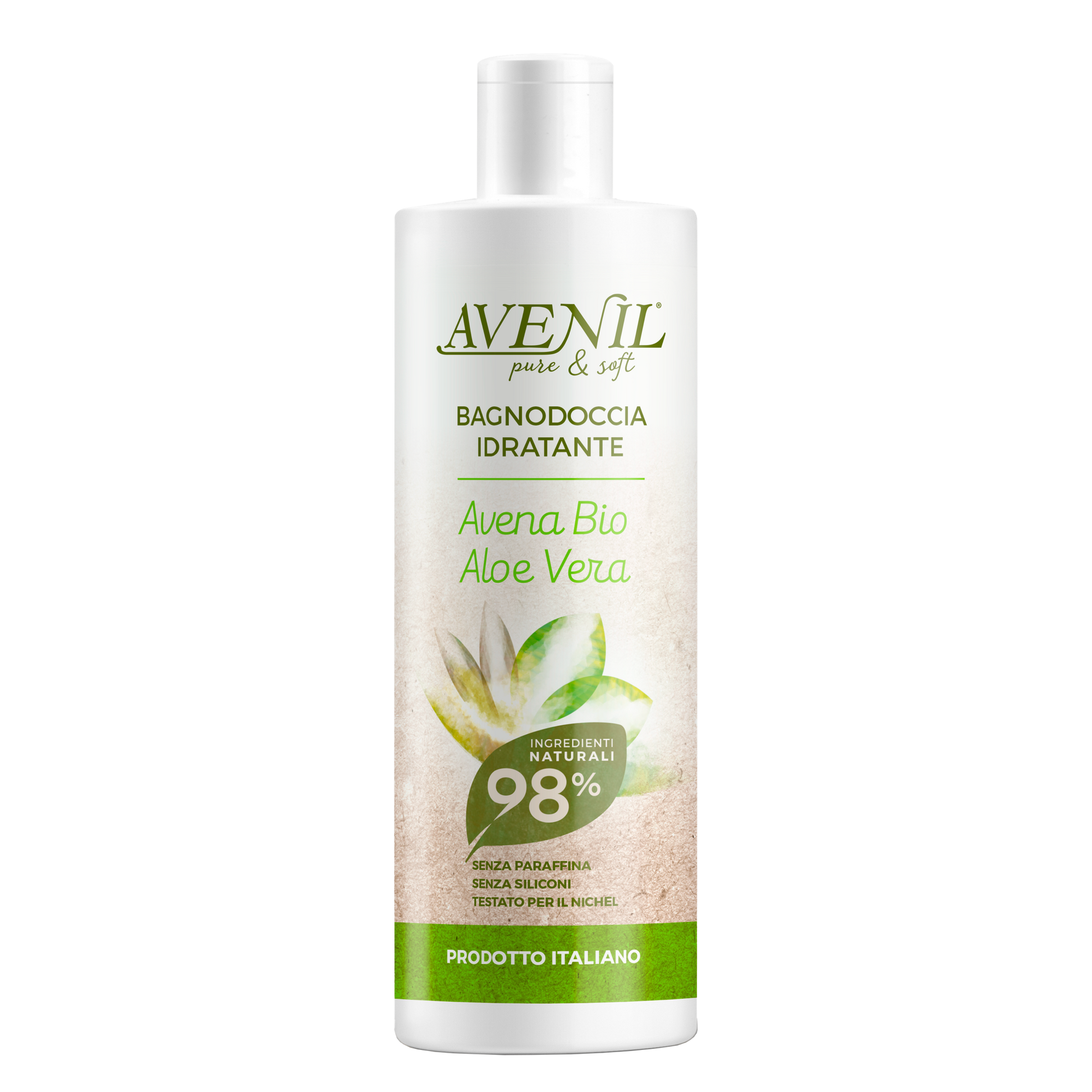 Il Bagnodoccia idratante AVENIL® PURE & SOFT con avena bio e aloe vera deterge delicatamente il corpo lasciando la pelle fresca e vellutata. Adatto a tutti i tipi di pelle, per uso frequente.