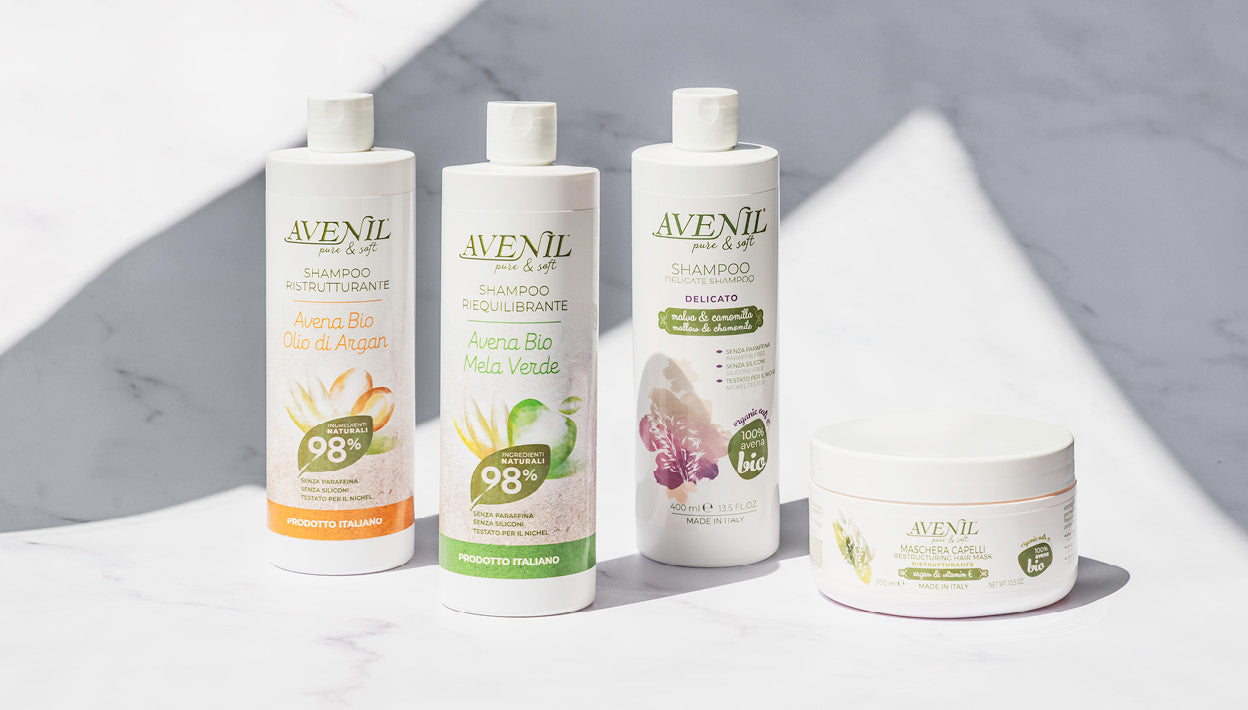 La maschera capelli ristrutturante AVENIL® PURE & SOFT con olio di argan, vitamina E e avena dona nuova vita ai capelli sfibrati, nutrendoli, migliorandone la pettinabilità e proteggendoli più a lungo. È indicata per un uso frequente.